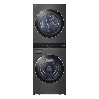 LG WashTowerMC Laveuse à chargement frontal 5,2 pi³ et sécheuse au gaz 7,4 pi³ acier noir WKGX201HBA