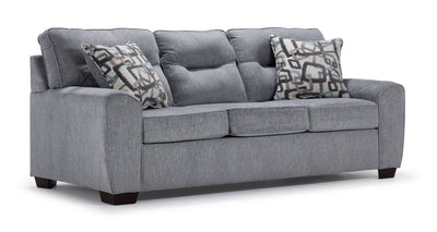 Polyvalence intemporelle et confort pittoresque, le Mackay permet de profiter de la flexibilité de la vie moderne. Les lignes épurées et le design minimaliste du sofa Mackay lui donnent une atmosphère accueillante qui vous encouragera à ralentir et à vous détendre. La couleur gris pâle marbré est apaisante et peut facilement s'harmoniser avec une variété de décors de salle de séjour. Doux au toucher, le tissu de ce sofa offre une sensation de luxe, vous invitant à vous enfoncer dans les coussins moelleux. Le sofa est même accompagné de deux coussins décoratifs si vous souhaitez ajouter une touche de couleur supplémentaire! Fièrement fabriqué au Canada, le sofa Mackay est conçu avec soin et avec des matériaux de qualité qui garantissent un confort et un soutien de longue durée. La structure est faite de bois massif, de contreplaqué et de panneaux OSB (panneau de particules orientées) approuvés par l'industrie, un panneau de bois durable et polyvalent semblable au contreplaqué qui résiste au décollement et à la déformation. Le sofa est ainsi doté d'une structure solide, conçue pour durer des années. Le recouvrement en polyester, à la fois doux et résistant, est confortable et étonnamment facile à entretenir! Avec des coussins confortables et une suspension équilibrée, vous pouvez vous détendre en regardant un film, en lisant un livre ou en discutant avec des amis. Le sofa Mackay a tout pour plaire.Dimensions du produit: Profondeur: 38,5", Hauteur: 37,5", Largeur: 90,5",