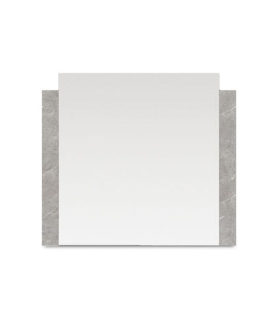 - Le miroir sans cadre est bordé de chaque côté par du magnifique faux marbre de Carrera gris