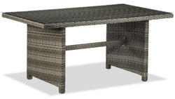 Aluminum frame construction with grey double-rib wicker and tempered glass.