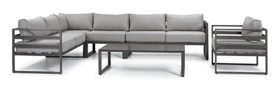 Transformez votre espace extérieur avec le sectionnel de jardin de 6 mcx Milos, élégant et moderne, conçu pour la durabilité, le confort et le style. Que vous receviez des invités ou que vous vous détendiez avec un bon livre, cet ensemble de mobilier de jardin offre une retraite spacieuse et accueillante. Conçus pour une relaxation supérieure, les coussins en mousse haute densité offrent un soutien moelleux tout en conservant leur forme au fil du temps. Enveloppés de polyester souple et de mousse résistante aux intempéries, ces coussins garantissent un confort et une résistance de longue durée, quel que soit le climat. Les housses en fibre teintée dans la masse résistent à la décoloration et les housses de coussin à fermeture à glissière facilitent le nettoyage. Construit pour la solidité et la longévité, le cadre en aluminium fabriqué à la main est doté d'un fini résistant à la rouille, assurant stabilité et durabilité pour les années à venir. La table de centre ajoute à la fois élégance et fonctionnalité, avec un cadre robuste en aluminium et un dessus en verre trempé imprimé de 5 mm pour une touche moderne et élégante. Conçus pour résister à tous les intempéries, la mousse et le tissu résistent à l'eau, à la moisissure et au mildiou, garantissant un aspect frais et éclatant saison après saison. Avec son design élégant et contemporain, ce sectionnel de jardin de 6 mcx est le mobilier parfait pour tout patio, terrasse ou arrière-cour.Dimensions du produit: Profondeur: 85", Hauteur: 25,25", Largeur: 141",
