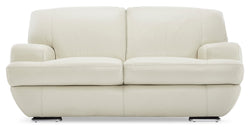 Laissez cette élégante causeuse en cuir blanc cassé devenir la pièce maîtresse de votre salle de séjour. De larges bras généreusement rembourrés, une base arrondie et une suspension à sangles faites d’un mélange de polyester et de nylon ultra durables accentuent sa conception unique et procurent un confort inégalé. Des points de couture détaillés et des pattes chromées ajoutent au charme moderne de cette causeuse.