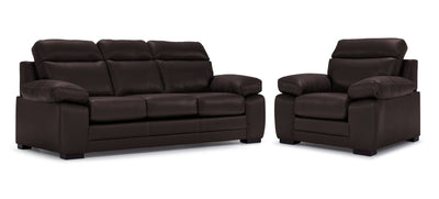 Morrison II Ens. Sofa et fauteuil en cuir - brun