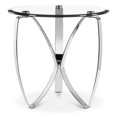 Transformez votre lieu de rassemblement en un oasis moderne avec la table de bout de la collection Nico. Le robuste dessus en verre rond brille pour un aspect poli, sans fioriture. Les trois pattes chromées, de forme triangulaire, donnent une tournure amusante à la plupart des tables modernes, complétant le design avec une apparence légère comme l’air. Avec la collection Nico, il n’a jamais été aussi facile d’ajouter un effet WOW à votre espace. Assemblage requis par le client.Dimensions du produit: Profondeur: 24", Hauteur: 22", Largeur: 24",