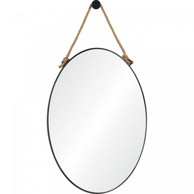 Reimagining a traditional oval silhouette, this mirror features a black powder-coated iron frame paired with hemp rope and hook detailing for a distinctive industrial touch.Dimensions du produit: Profondeur: 2.25", Hauteur: 42", Largeur: 22",