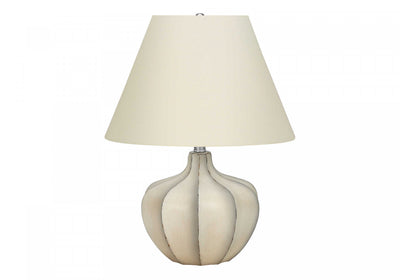 - Brighten up any room with this stylish and versatile 21"h cream resin table lamp with an attractive gourd shape base, topped with a classic ivory linen empire shade and round silver metal finial.