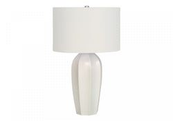 - This art-deco inspired 27"h table lamp with a cream ceramic tapered vase base, topped with an ivory linen drum shade and finished with a silver finial on top, brings fashionable, modern style to any living room, bedroom, or office space.