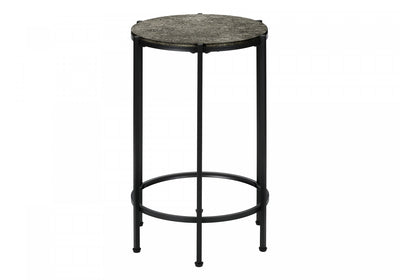 - Stylish and trendy 24" h accent table with a dark bronze laminate top and sleek black metal legs.