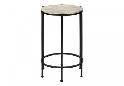 - Stylish and trendy 24" h accent table with a cream stone laminate top and sleek black metal legs.