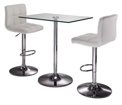 Roxanne Salle à manger 3 mcx rectangulaire hauteur bistrot - verre, chrome, blanc