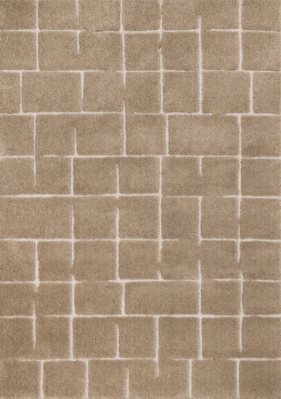 Sable Grid Tapis (6,7 pi X 9,6 pi) motif grille brisée – brun pâle, crème
