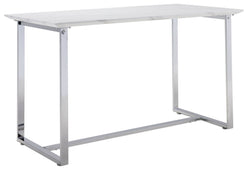 - La base de table chromée résiste à l’altération pour plus de solidité et de durabilité. Le dessus de la table résiste à une certaine chaleur et aux taches, mais il est recommandé de ne pas poser de plats chauds directement sur la surface de la table.