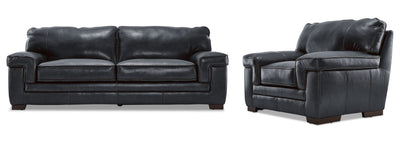 Stampede Ens. Sofa et fauteuil en cuir – anthracite