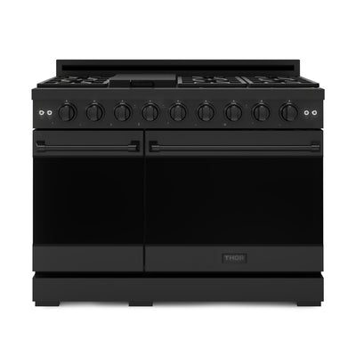 Thor Kitchen Série Gordon Ramsay Cuisinière au gaz professionnelle autonome 7,0 pi³ four double acier inoxydable noir RSG48EB