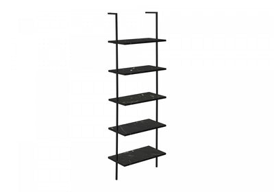 This charming and minimalist ladder bookcase is a great way to bring a modern luxury style to your decor. It is crafted with an open black metal frame for a glam look, and mounts to the wall to keep it in place. Five tier ample shelving made from engineered wood in an elegant black marble-look finish and provide the perfect place for books, plants, bar essentials, or anything else you want to display. Mount this tall and narrow space-saving bookshelf to the wall in your home office, living room, or bedroom.Dimensions du produit: Profondeur: 12", Hauteur: 72", Largeur: 23.75",