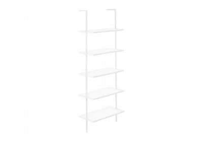 This charming and minimalist ladder bookcase is a great way to bring modern style to your decor. It is crafted with an open white metal frame that mounts to the wall to keep it in place. Five tier ample shelving made from engineered wood in a white finish and provide the perfect place for books, plants, bar essentials, or anything else you want to display. Mount this tall and narrow space-saving bookshelf to the wall in your home office, living room, or bedroom.Dimensions du produit: Profondeur: 12", Hauteur: 72", Largeur: 23.75",