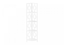 - This corner shelf features a three-leg white metal frame, allowing it to sit tight against the wall