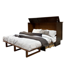 Apportez un design intelligent et un confort moderne à votre intérieur avec la commode-lit grand Willow en brun cerisier, une solution polyvalente et peu encombrante qui combine savoir-faire artisanal, praticité et style. Fabriqué de manière experte à partir de pin massif et de placages de pin, ce meuble multifonctionnel est composé de bois séché au four pour une résistance et une durabilité accrues, tandis que sa quincaillerie de qualité supérieure garantit un fonctionnement fluide et sûr. À l'intérieur, un matelas haute résilience offre un confort respirant et un bon soutien, parfait pour les invités de passage ou pour se détendre au quotidien. La station de recharge USB intégrée permet de recharger vos appareils et de les garder à portée de main, éliminant ainsi l'encombrement et ajoutant une fonctionnalité pratique à votre espace. Un tiroir de rangement spacieux offre beaucoup d'espace pour la literie, les oreillers ou les effets personnels, ce qui permet de maintenir un aménagement propre et organisé. Conçu avec un mécanisme de verrouillage sécurisé et adapté aux draps grand standard, la commode-lit Willow allie facilité d'utilisation et qualité durable. Pouvant supporter jusqu'à 500 lb, elle est le mélange parfait entre beauté, fiabilité et polyvalence, idéale pour maximiser le confort dans les petits espaces.