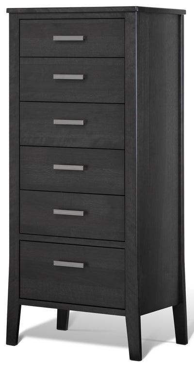 Recherché. La couleur la plus chaude en décoration aujourd’hui – anthracite - peut être la vôtre dans votre chambre à coucher, avec notre collection Yorkville! Avec ses lignes épurées et ses éléments décoratifs simples, cette commode lingerie met instantanément à jour votre espace avec un aspect d’inspiration urbaine minime. Les poignées en nickel brossé ajoutent juste la bonne quantité de raffinement moderne sans en faire trop.Dimensions du produit: Profondeur: 16", Hauteur: 53.25", Largeur: 24",